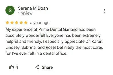At Prime Dental Garland, we’re dedicated to delivering exceptional, personalized dental care in a state-of-the-art facility right here in Plano, TX. Our experienced team of dental professionals—specialists in a wide range of fields—is committed to making your dental experience comfortable, efficient, and effective. Our passion for patient care has fostered long-lasting relationships with our community, and we look forward to serving you for many years to come.